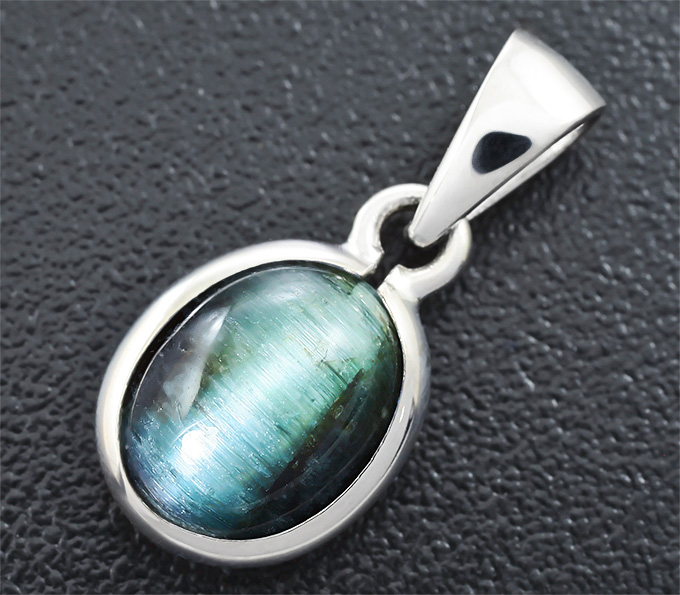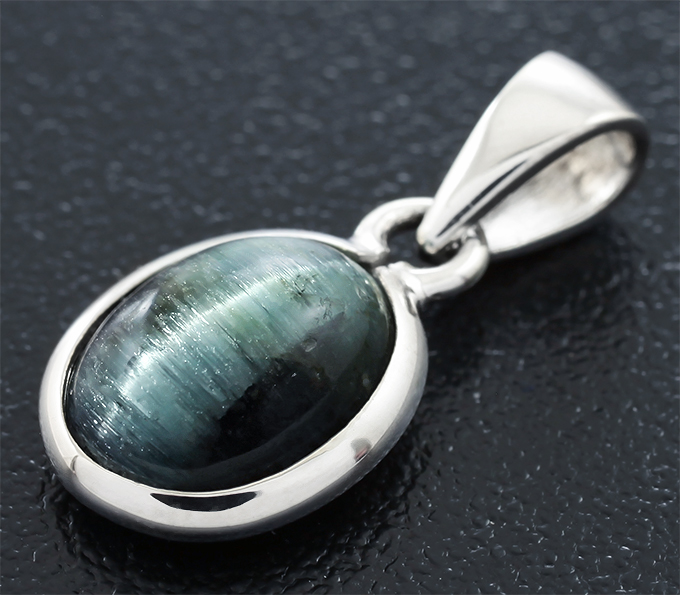 Кулон, инкрустированный турмалином с эффектом кошачьего глаза
