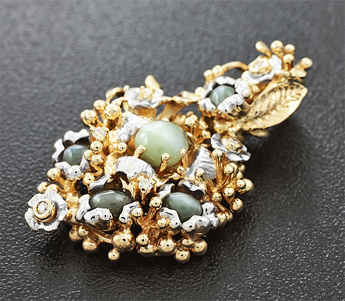 Кулон с хризобериллами и бриллиантами