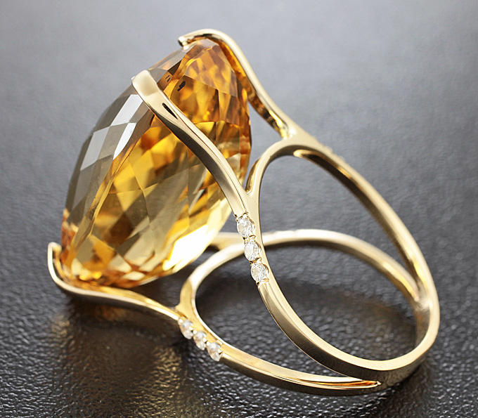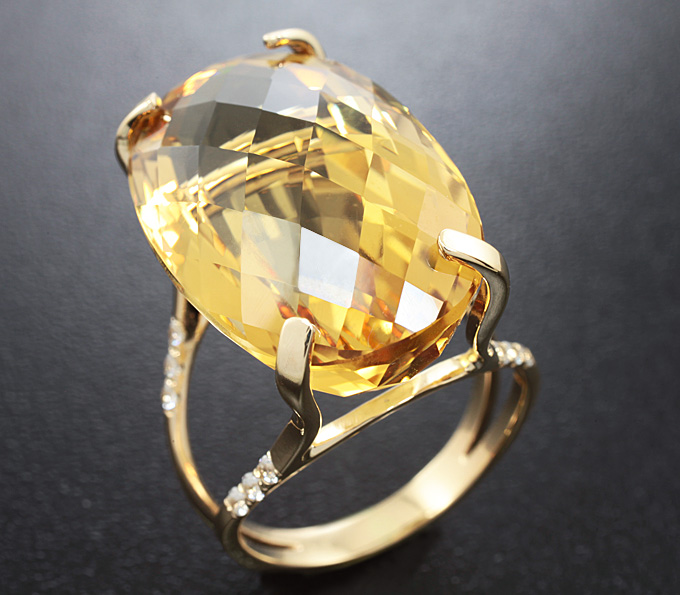 Кольцо с чистейшим цитрином и бесцветными цирконами