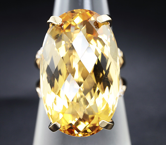 Вашему вниманию предлагается кольцо из желтого золота 585 пробы с чистейшим цитрином и бесцветными цирконами! Диаметр дополнительной инкрустации 1,5 мм. Площадка 25,1 х 15,6 мм, высота 14 мм. Вес изделия 9,5 г. Размер 18. Ниже приводятся ювелирные характеристики цитрина.