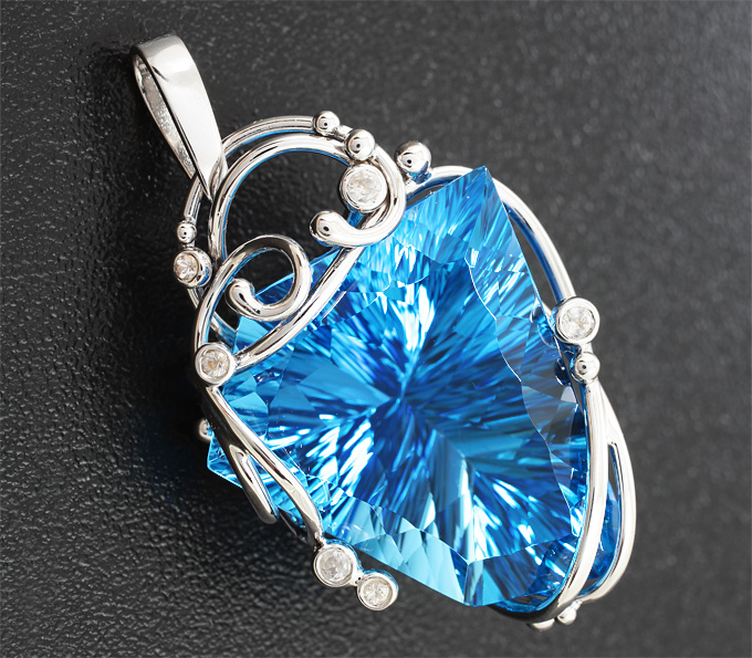 Кулон с роскошным топазом авторской огранки и бесцветными цирконами