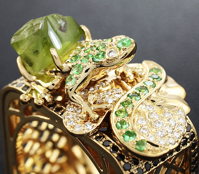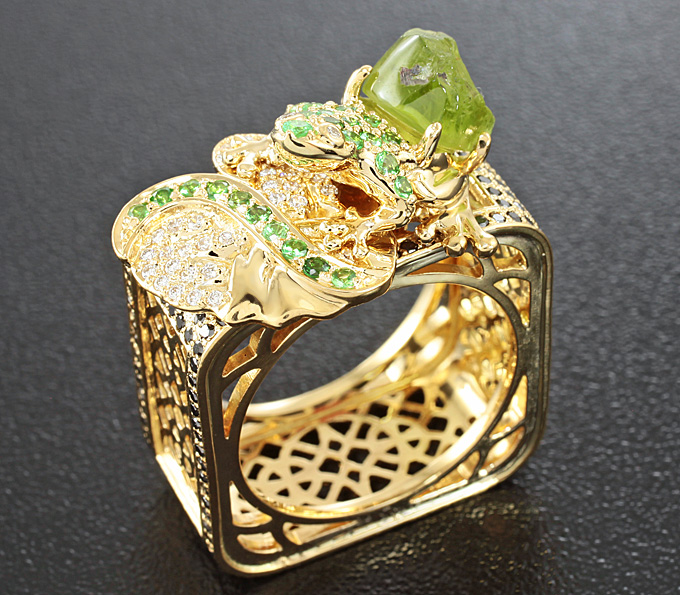 4. Отливка скульптуры лягушки в золоте и доогранка перидота под нужные размеры.
