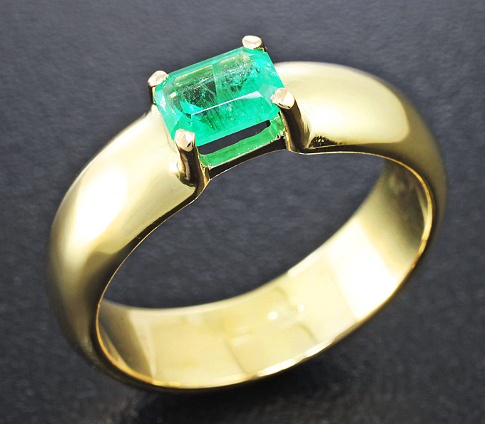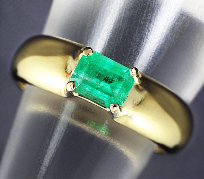 Вашему вниманию предлагается кольцо из желтого золота 585 пробы с уральским изумрудом! Ширина площадки 6 мм, высота 4 мм. Вес изделия 7,7 г. Размер 19,5. Ниже приводятся ювелирные характеристики.