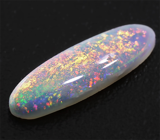 Вашему вниманию предлагается кольцо из желтого золота 585 пробы с австралийским solid опалом! Основные цвета опалесценции: красный, желтый и зеленый. Ширина площадки 19 мм, высота 3 мм. Вес изделия 2,4 г. Размер 18. Ниже приводятся ювелирные характеристики вставки.
