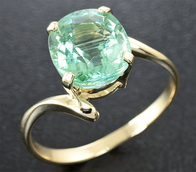 Вашему вниманию предлагается кольцо из желтого золота 585 пробы с парайба турмалином! Площадка 12 х 9 мм, высота 8 мм. Вес изделия 2,9 г. Размер 18. Ниже приводятся ювелирные характеристики вставки.