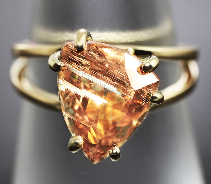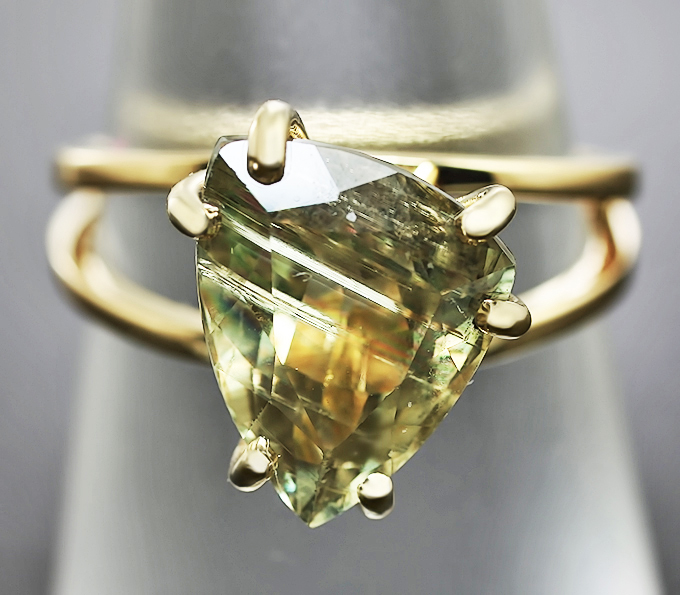 Вашему вниманию предлагается кольцо из желтого золота 585 пробы c диаспором! При смене освещения камень приобретает ярко-выраженный розовый нацвет. Площадка 13 х 11 мм, высота 8 мм. Вес изделия 4 г. Размер 17,5. Ниже приводятся ювелирные характеристики вставки.