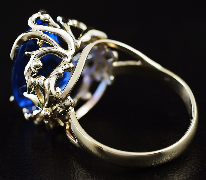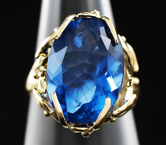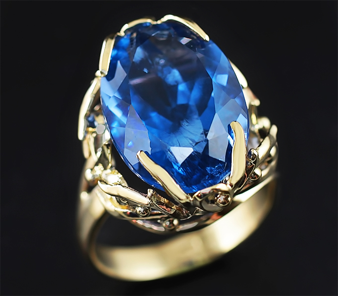 Вашему вниманию предлагается кольцо из желтого золота 585 пробы с флюоритом! При смене освещения камень меняет цвет с синего на пурпурный. Площадка 21 х 18 мм, высота 13 мм. Вес изделия 8,9 г. Размер 19. Ниже приводятся ювелирные характеристики вставки.