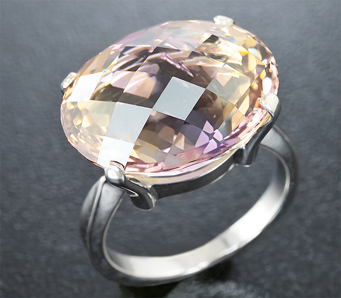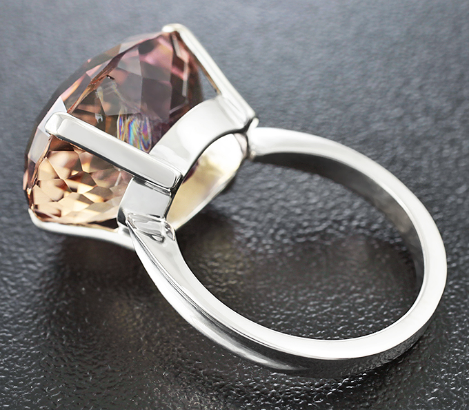 Вашему вниманию предлагается кольцо из белого золота 585 пробы с аметрином! Площадка 17,4 х 14 мм, высота 12 мм. Вес изделия 5,9 г. Размер 17. Ниже приводятся ювелирные характеристики вставки.
