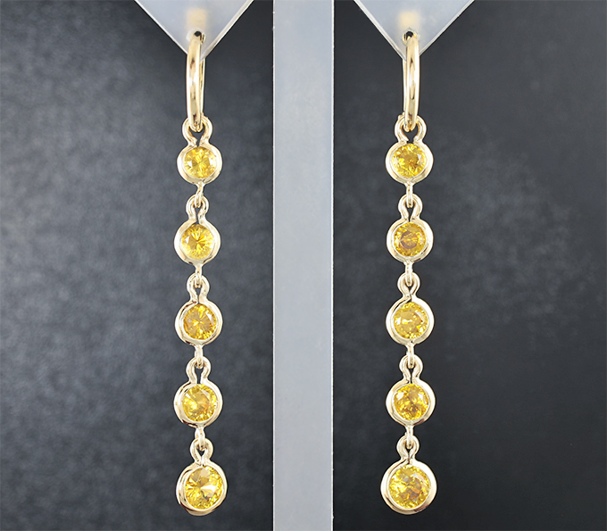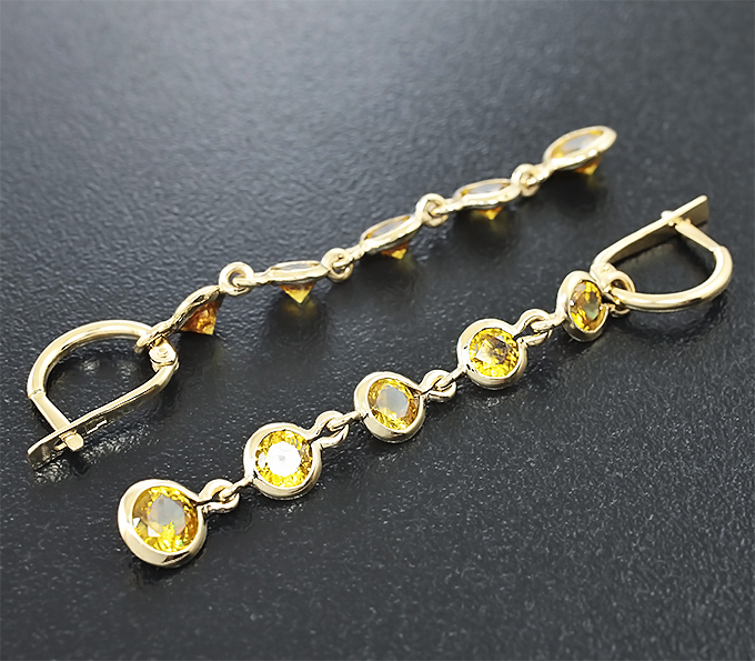 Вашему вниманию предлагаются серьги из желтого золота 585 пробы со сфенами! Размеры серег с петлей 63 х 7 мм. Вес пары 5,5 г. Ниже приводятся ювелирные характеристики вставок.