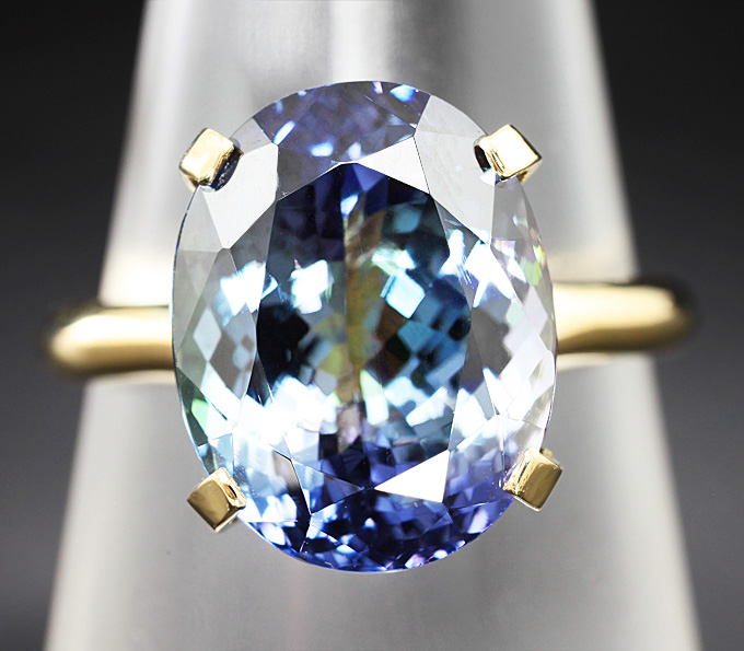 Вашему вниманию предлагается кольцо из желтого золота 585 пробы с чистейшим танзанитом! Площадка 13,33 х 10,45 мм, высота 9 мм. Вес изделия 5,4 г. Размер 18. Ниже приводятся ювелирные характеристики вставки.