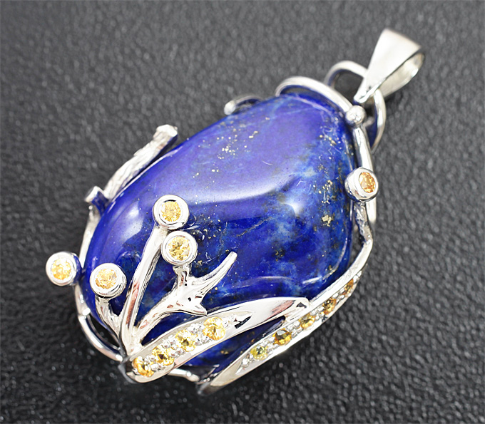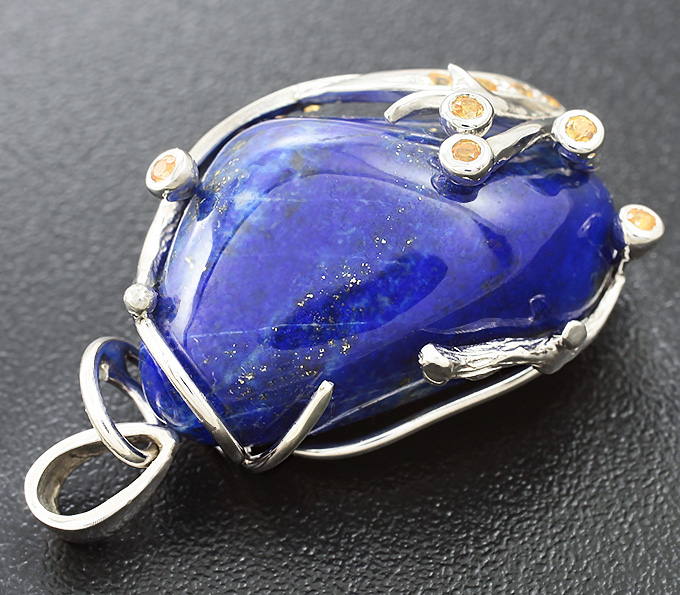 Вашему вниманию предлагается кулон из стерлингового серебра (925 проба) с лазуритом и сапфирами! Диаметр дополнительной инкрустации 1,5 мм и 2 мм. Размеры кулона с петлей 41 х 22 мм. Вес 17,8 г. Ниже приводятся ювелирные характеристики лазурита.