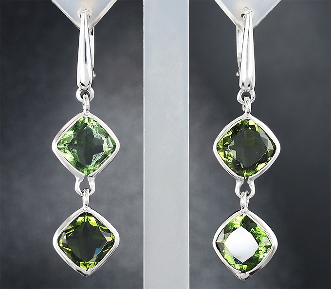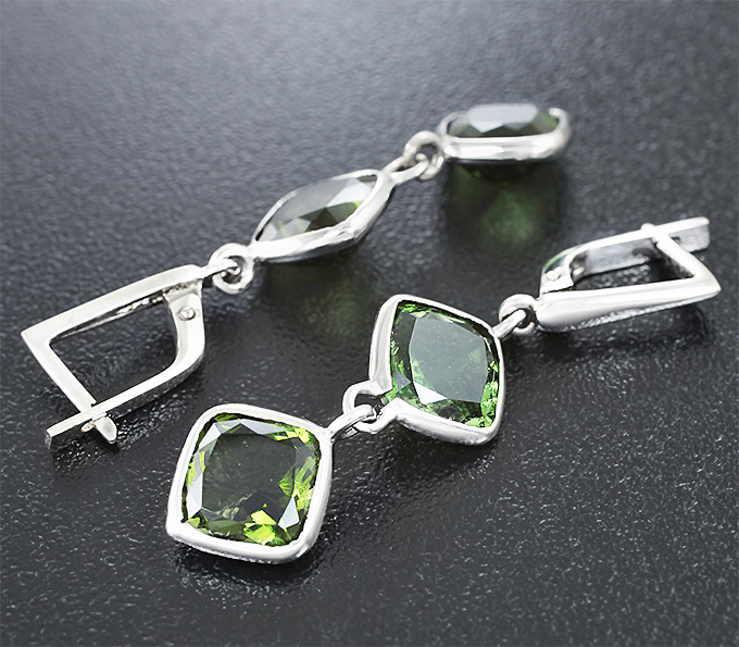 Вашему вниманию предлагаются серьги из стерлингового серебра (925 проба) с молдавитами! Размеры серег с петлей 47 х 12 мм. Вес пары 5,5 г. Ниже приводятся ювелирные характеристики вставок.
