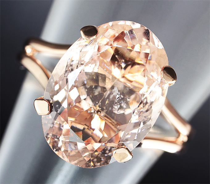 Вашему вниманию предлагается кольцо из розового золота 585 пробы с морганитом! Площадка 14 х 10 мм, высота 7 мм. Вес изделия 3,5 г. Размер 17. Ниже приводятся ювелирные характеристики вставки.