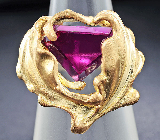 Вашему вниманию предлагается кольцо из стерлингового серебра (925 проба) cо слайсом рубеллита турмалина! Изделие частично позолочено. Площадка 24 х 23 мм, высота 5 мм. Вес изделия 9,3 г. Размер 17. Ниже приводятся ювелирные характеристики вставки.