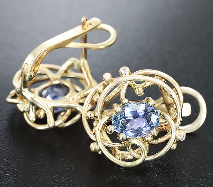 Серьги с танзанитами и бриллиантами
