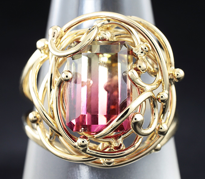 Вашему вниманию предлагается кольцо из желтого золота 585 пробы с полихромным турмалином! Площадка 20 х 19 мм, высота 8 мм. Вес изделия 6,9 г. Размер 19. Ниже приводятся ювелирные характеристики вставки.