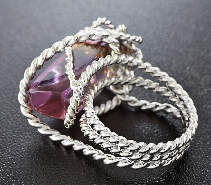 Вашему вниманию предлагается кольцо из стерлингового серебра (925 проба) c аметрином и цитрином! Диаметр дополнительной инкрустации 2 мм. Площадка 27 х 18 мм, высота 16 мм. Вес изделия 13,9 г. Размер 18,25. Ниже приводятся ювелирные характеристики вставки.
