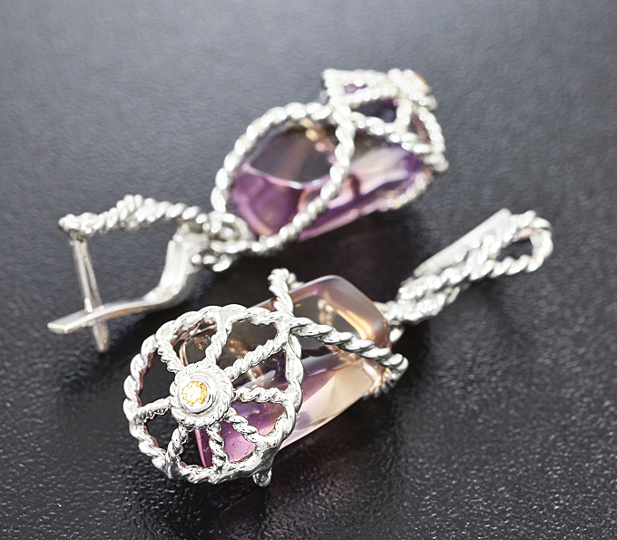Серьги с аметринами и цитринами