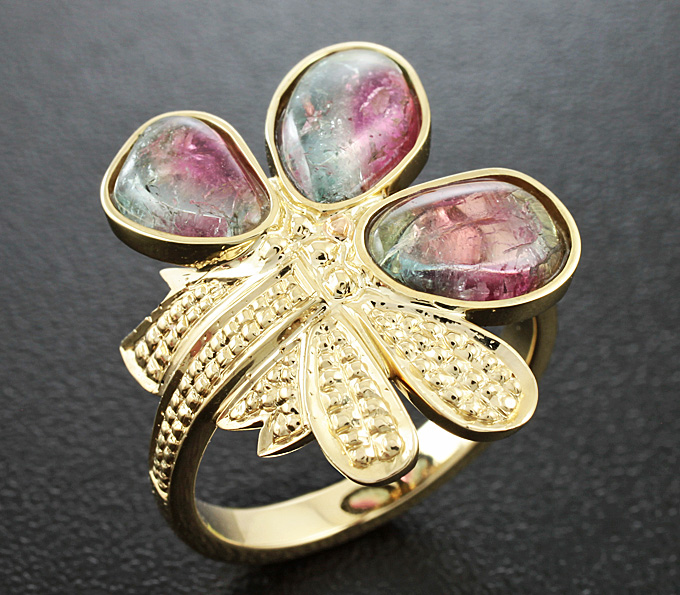 Вашему вниманию предлагается кольцо из желтого золота 585 пробы с турмалинами! Площадка 22 х 18 мм, высота 4 мм. Вес изделия 6,2 г. Размер 17,75. Ниже приводятся ювелирные характеристики вставок.