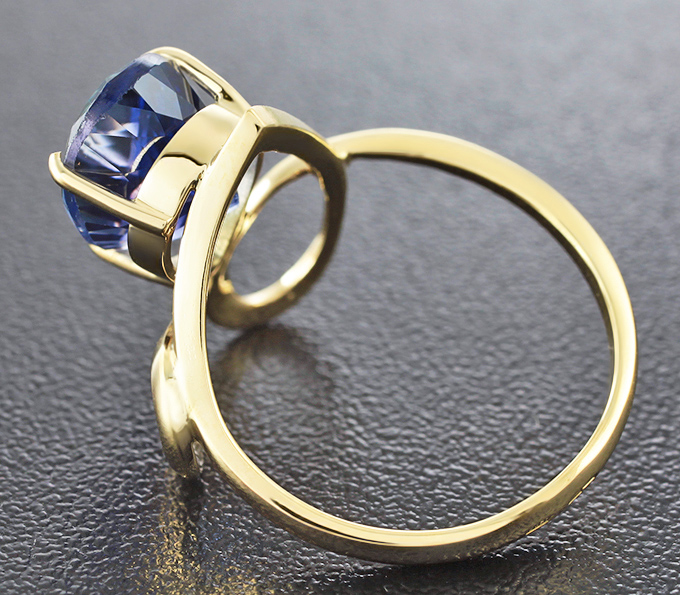 Вашему вниманию предлагается кольцо из желтого золота 585 пробы с танзанитом! Площадка 18 х 18 мм, высота 8 мм. Вес изделия 3,7 г. Размер 18. Ниже приводятся ювелирные характеристики вставки