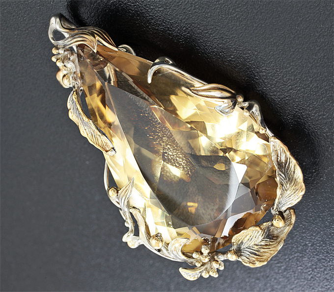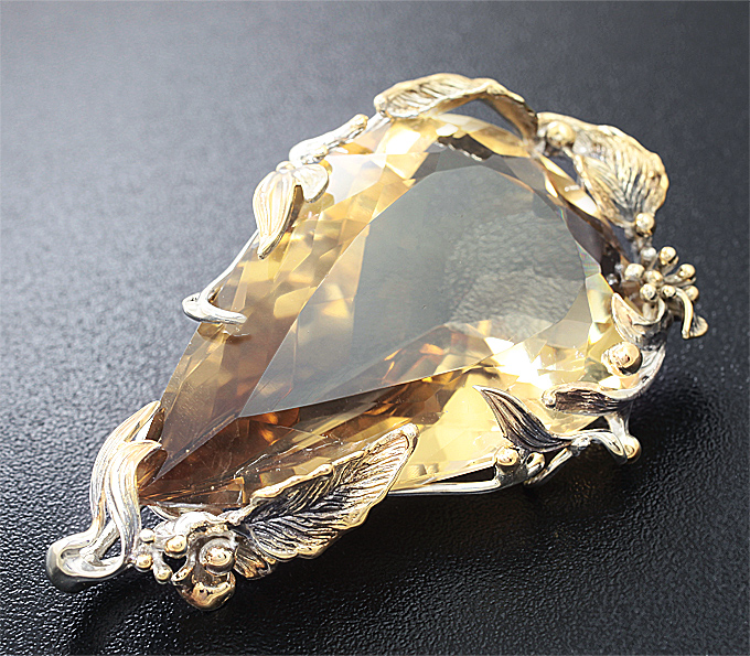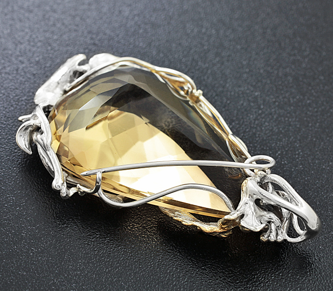 Вашему вниманию предлагается брошь/кулон из стерлингового серебра (925 проба) с цитрином! Изделие с частичными чернением и позолотой. Площадка кулона 68 х 40 мм. Вес 45,9 г. Ниже приводятся ювелирные характеристики вставки.