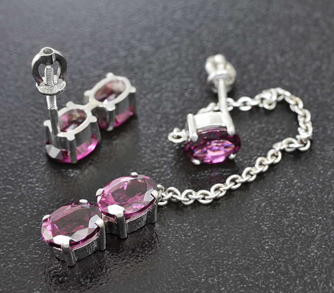 Вашему вниманию предлагаются серьги из стерлингового серебра (925 проба) с родолитами гранатами! Площадка серег 16 х 6 мм и 94 х 6 мм. Вес пары 4,6 г. Ниже приводятся ювелирные характеристики вставки.