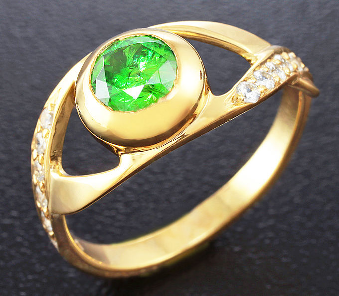 Вашему вниманию предлагается кольцо из стерлингового серебра (925 проба) c уральским демантоидом и лейкосапфирами! Изделие позолочено. Диаметр дополнительной инкрустации 1,5 мм. Площадка 20 х 9 мм, высота 4 мм. Вес изделия 2,5 г. Размер 17,25. Ниже приводятся ювелирные характеристики граната.