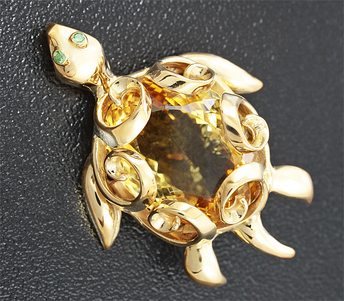 Кулон «Черепашка» с цитрином и цаворитами гранатами
