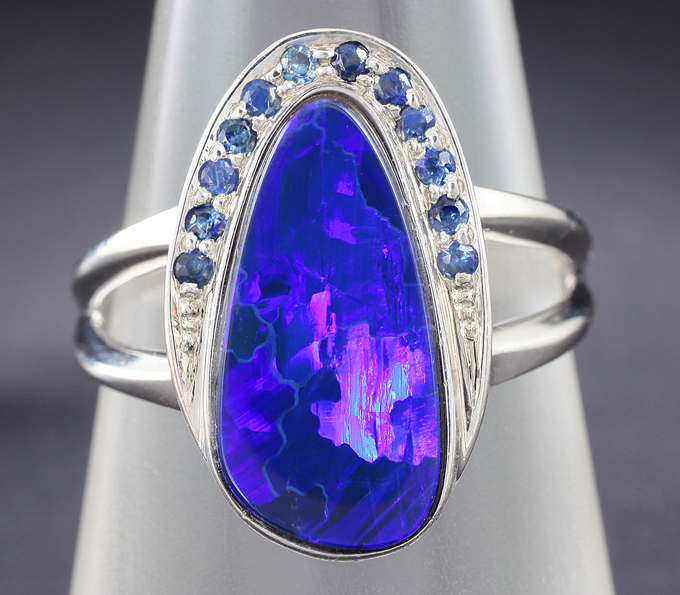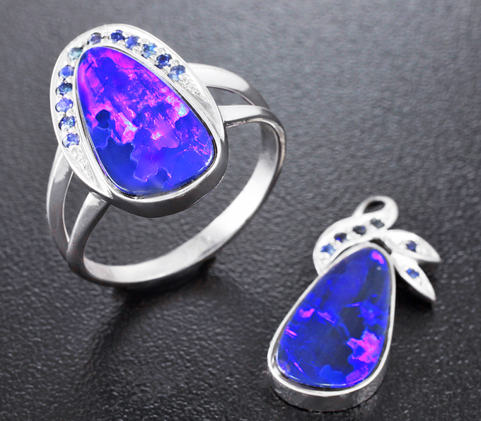 Комплект с австралийскими дублет опалами и синими сапфирами