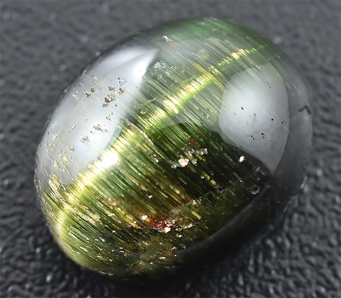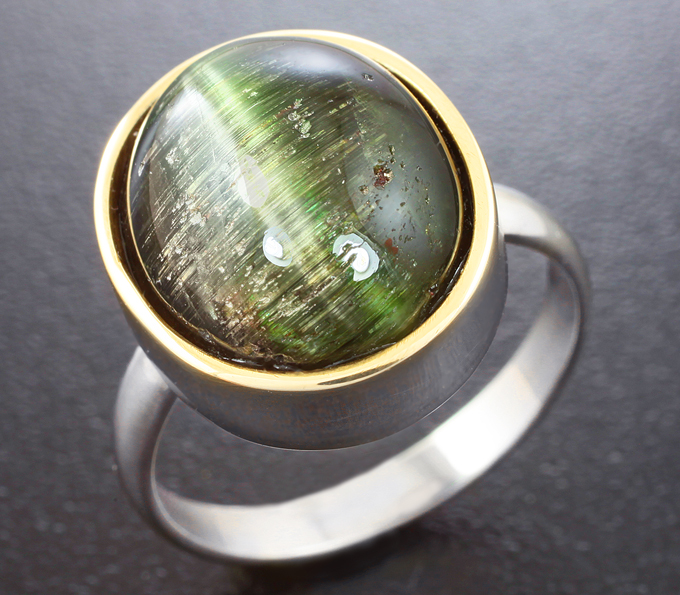 Кольцо, инкрустированное крупным турмалином с эффектом кошачьего глаза
