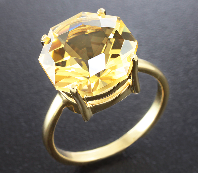 Вашему вниманию предлагается кольцо из желтого золота 585 пробы с цитрином авторской огранки «American»! Площадка 13 х 12 мм, высота 9 мм. Вес изделия 4,6 г. Размер 18,75. Ниже приводятся ювелирные характеристики вставки.
