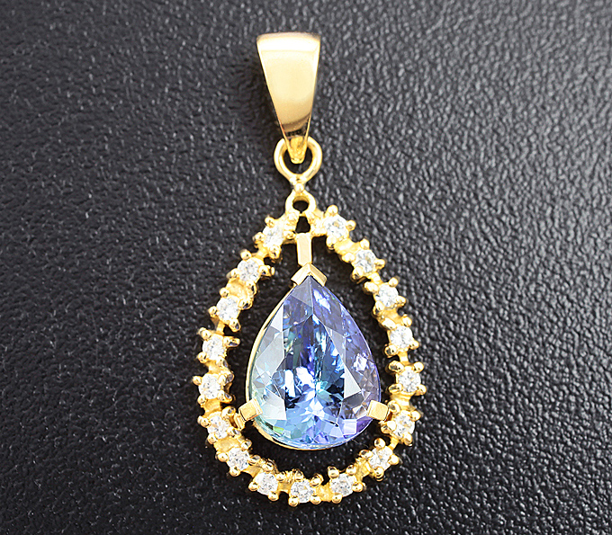Вашему вниманию предлагается кулон из желтого золота 750 пробы с чистейшим танзанитом и лейкосапфиром! Диаметр дополнительной инкрустации 1,5 мм. Размеры кулона с петлей 32 х 16 мм. Вес 3,8 г. Ниже приводятся ювелирные характеристики танзанита.