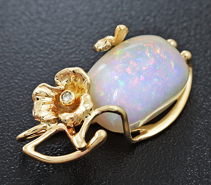 Кулон с кристаллическим Welo опалом и бриллиантом