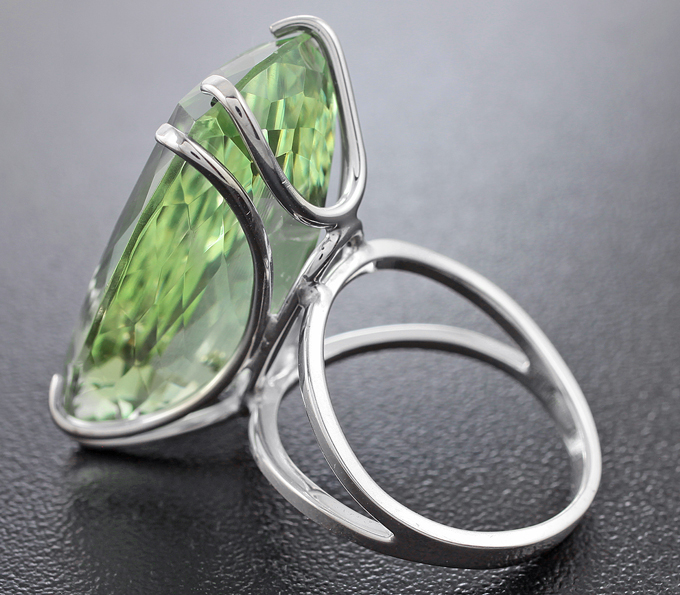 Вашему вниманию предлагается кольцо из стерлингового серебра (925 проба) c зеленым аметистом! Площадка 29 х 16 мм, высота 13 мм. Вес изделия 11,2 г. Размер 17,5. Ниже приводятся ювелирные характеристики вставки.