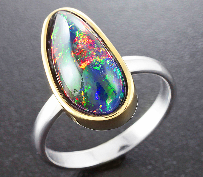 Вашему вниманию предлагается кольцо из стерлингового серебра (925 проба) c кристаллическим черным опалом! Изделие частично позолочено. Основные цвета опалесценции: красный и зеленый. Площадка 19 х 9 мм, высота 6 мм. Вес изделия 3,7 г. Размер 18. Ниже приводятся ювелирные характеристики вставки.