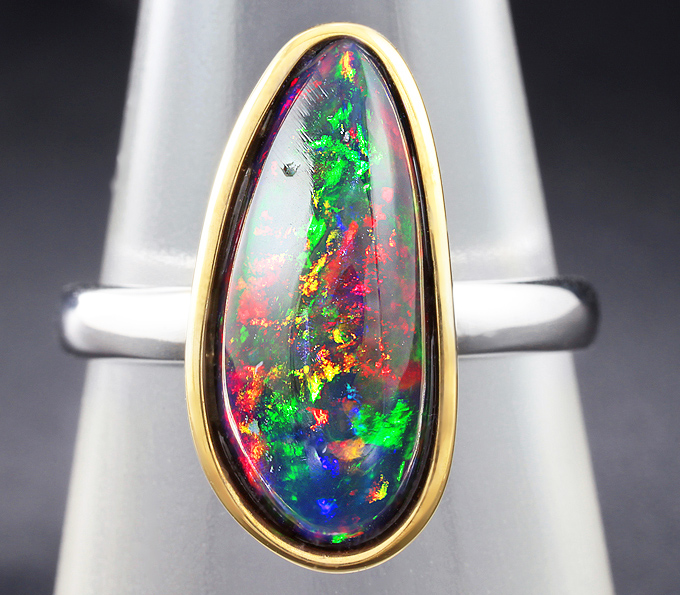 Кольцо c кристаллическим черным опалом