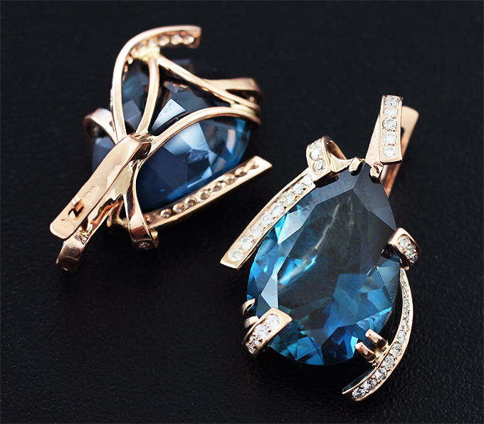 Серьги с насыщенно-синими топазами и муассанитами