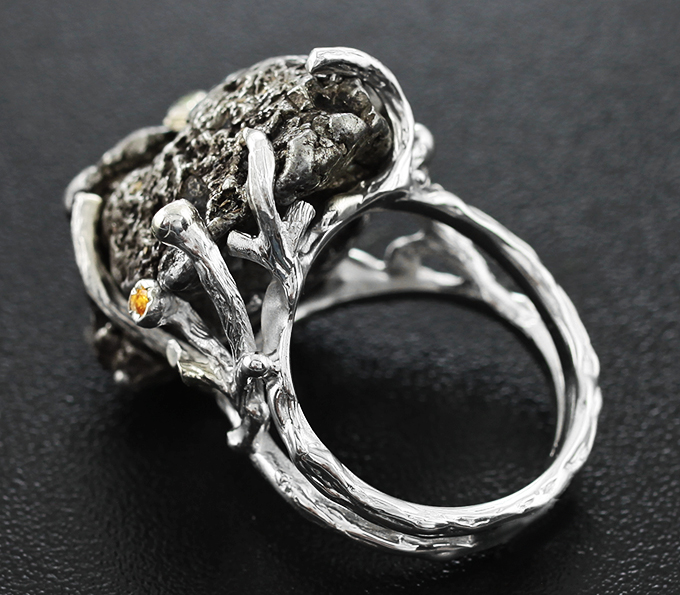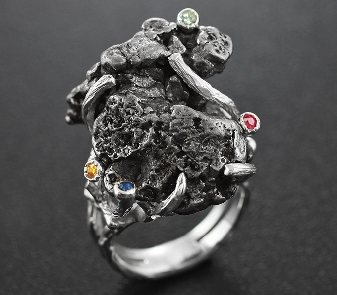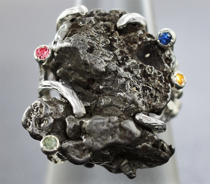 Комплект с осколками метеорита Кампо-дель-Сьело и разноцветными сапфирами
