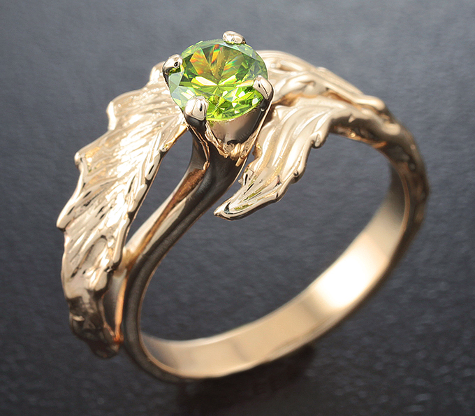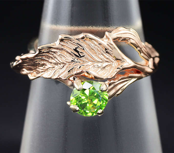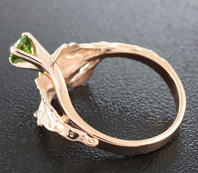 Вашему вниманию предлагается кольцо из розового золота 585 пробы c демантоидом гранатом! Диаметр вставок 4 мм. Ширина площадки 11 мм, высота 9 мм. Вес изделия 4,1 г. Размер 16,5. Ниже приводятся ювелирные характеристики вставки.