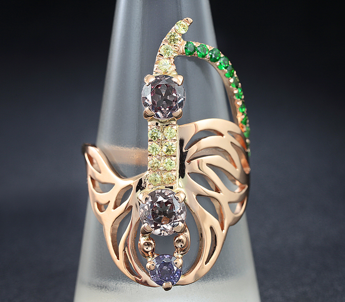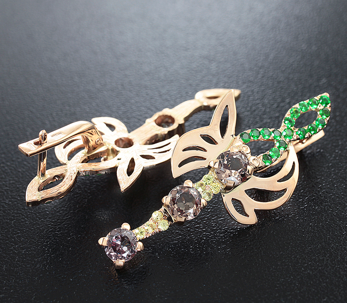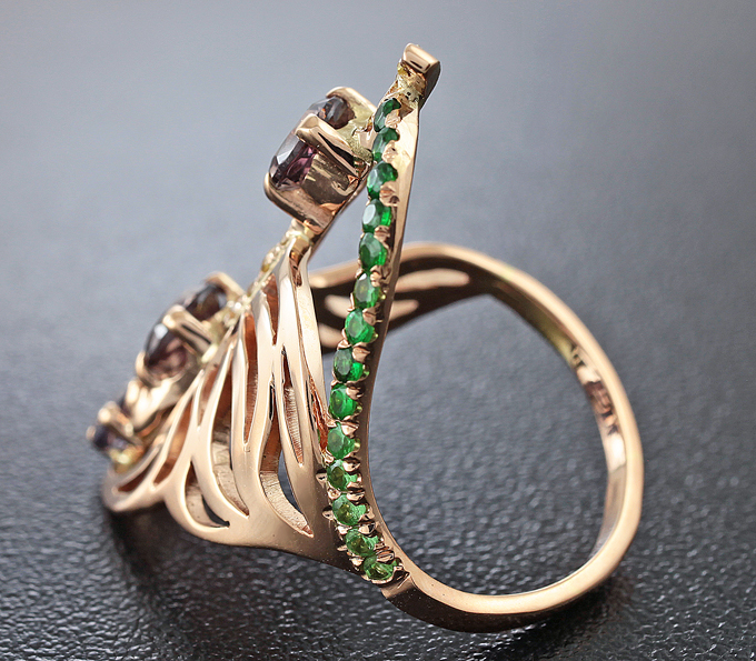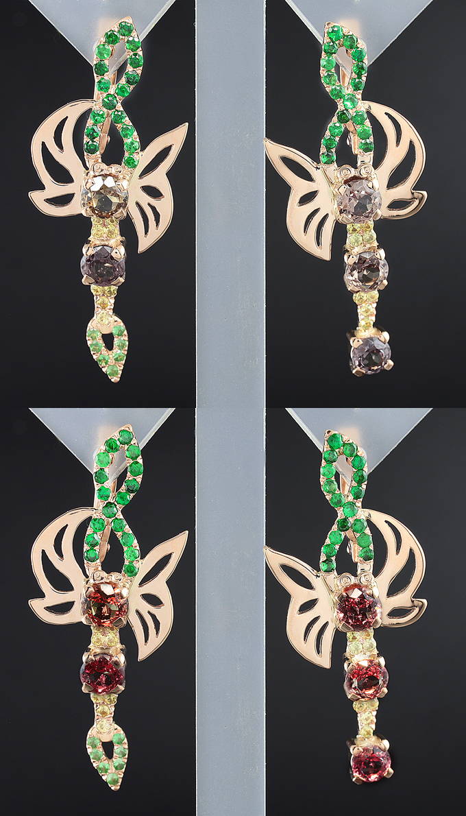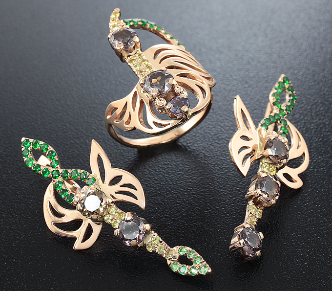 Комплект, инкрустированный гранатами со сменой цвета, цаворитами и желтыми сапфирами