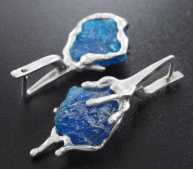 Вашему вниманию предлагаются серьги из стерлингового серебра (925 проба) с необработанными апатитами! Площадка серег 32 х 16 мм. Вес пары 10,1 г. Ниже приводятся ювелирные характеристики вставок.