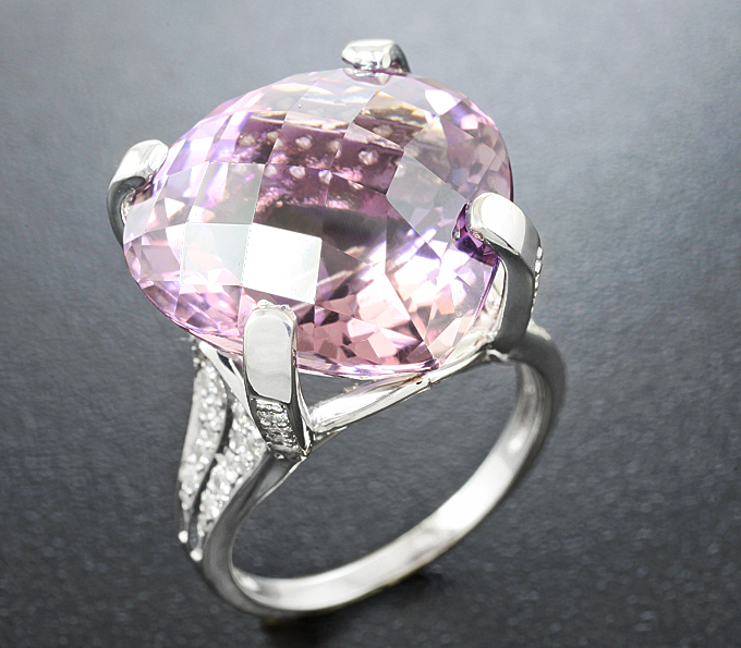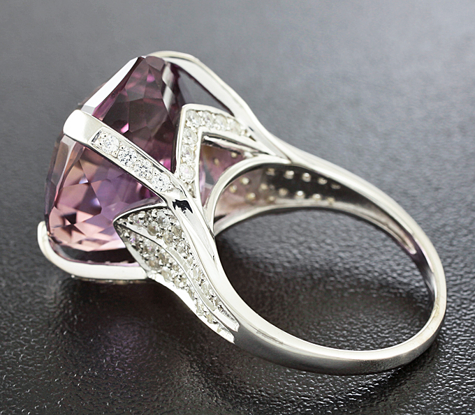 Кольцо c превосходным крупным аметрином и лейкосапфирами