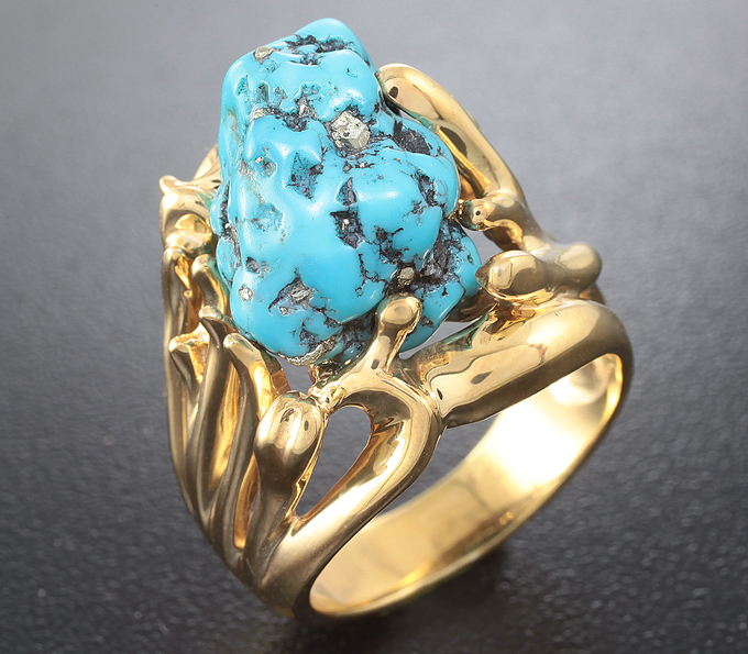 Кольцо с аризонской бирюзой с включениями пирита