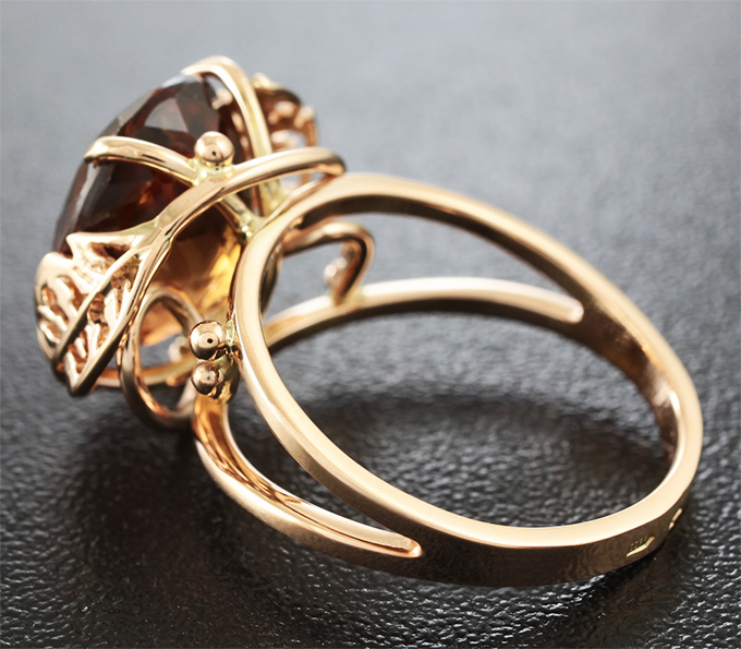 Вашему вниманию предлагается кольцо из красного золота 585 пробы c империал топазом! Размеры вставок 17 х 14 мм. Площадка 17 х 14 мм, высота 9 мм. Вес изделия 6 г. Размер 18. Ниже приводятся ювелирные характеристики вставки.
