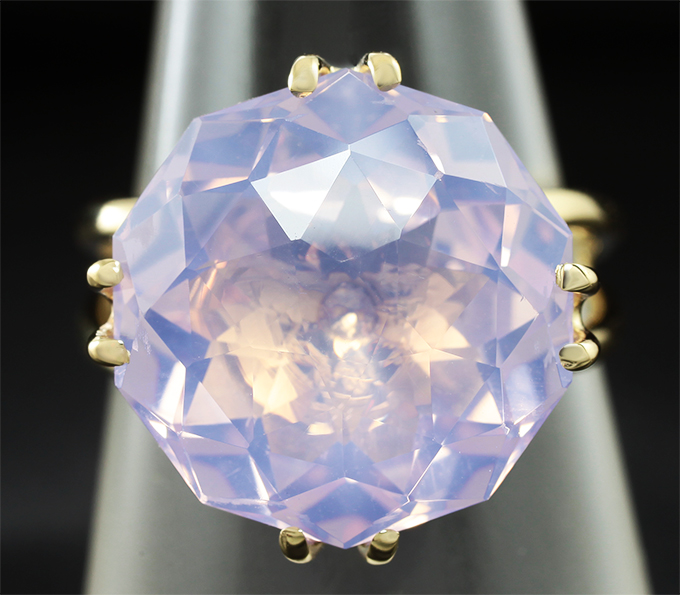 Вашему вниманию предлагается кольцо из желтого золота 585 пробы с лавандовым аметистом! Площадка 17 х 17 мм, высота 11 мм. Вес изделия 7,1 г. Размер 19. Ниже приводятся ювелирные характеристики вставки.