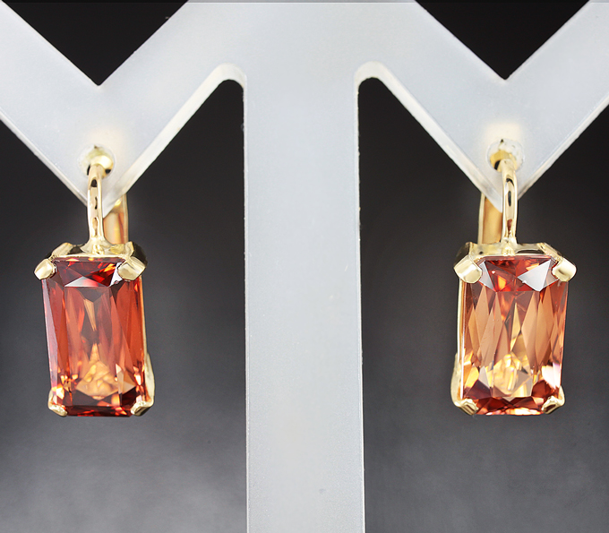 Вашему вниманию предлагаются серьги из желтого золота 585 пробы с оранжевыми цирконами! Площадка серег 12 х 8 мм. Вес пары 5,6 г. Ниже приводятся ювелирные характеристики вставок.