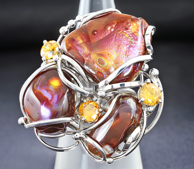 Кольцо с мексиканскими агатами и золотистыми сфенами