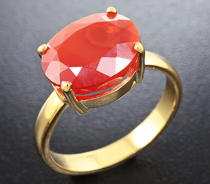Вашему вниманию предлагается кольцо из желтого золота 585 пробы с мексиканским огненным опалом! Площадка 12 х 9 мм, высота 8 мм. Вес изделия 4,1 г. Размер 18. Ниже приводятся ювелирные характеристики вставки.