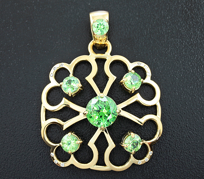 Кулон с демантоидами и бриллиантами