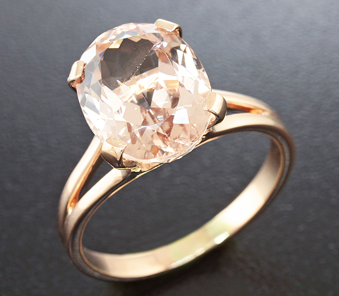 Вашему вниманию предлагается кольцо из розового золота 585 пробы с морганитом! Площадка 12 х 10 мм, высота 8 мм. Вес изделия 3,5 г. Размер 18. Ниже приводятся ювелирные характеристики вставки.